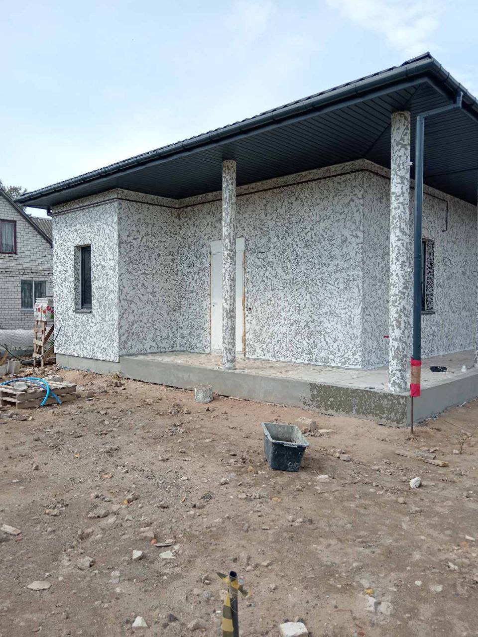 Весь перечень фасадных работ, включая утепление фасада, оштукатуривание, окрашивание стен, обшивка гипсокартоном, устройство стяжек пола, укладка напольных покрытий, облицовка плиткой, монтаж сантехники, декорирование интерьера, установку окон, дверей и прочее